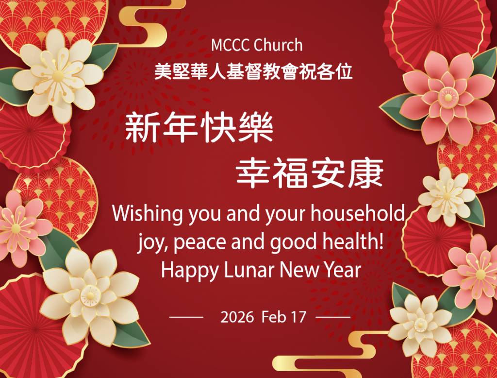 February 17th (Tuesday) is the first day of the Lunar New Year to the Chinese community. We wish all brothers and sisters a blessed New Year, Peace, Joy in God’s grace and faithful witness to this community.